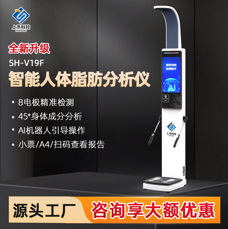 除了精準的測量功能,上禾人體脂肪測量儀還具備智能化和人性化的設計特點。設備搭載的高清彩色觸摸屏和智能操作系統,讓操作變得簡單快捷。智能語音和動畫提示引導用戶輕松完成測量,測量結果支持熱敏智能打印或電子保存,方便用戶隨時查看和對比數據。更重要的是,設備支持多種通信方式,可以將測量數據實時上傳至手機APP或第三方系統,實現數據的無縫對接和共享,為用戶提供全面的健康篩查和歷史查詢服務。
